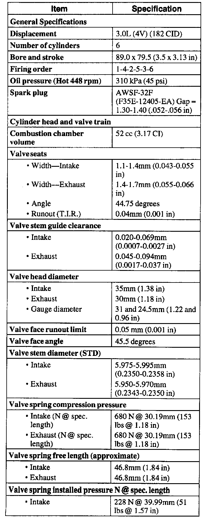 ENGINE GENERAL SPECIFICATIONSFootnotes: