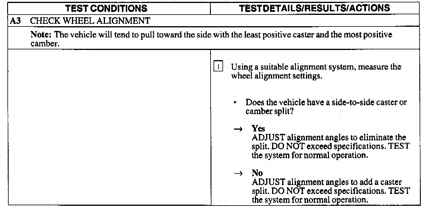 Pinpoint Test A: DRIFT LEFT OR RIGHT