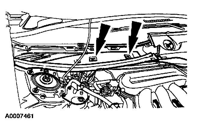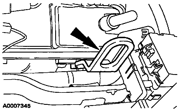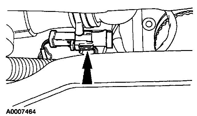 9. Depress the tabs on the plastic retainers and install the cooler lines.