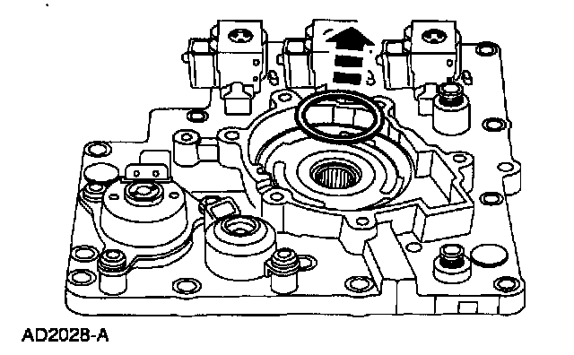 Install new O-rings and install the shift solenoids by pressing down and rotating them until they lock in place.
