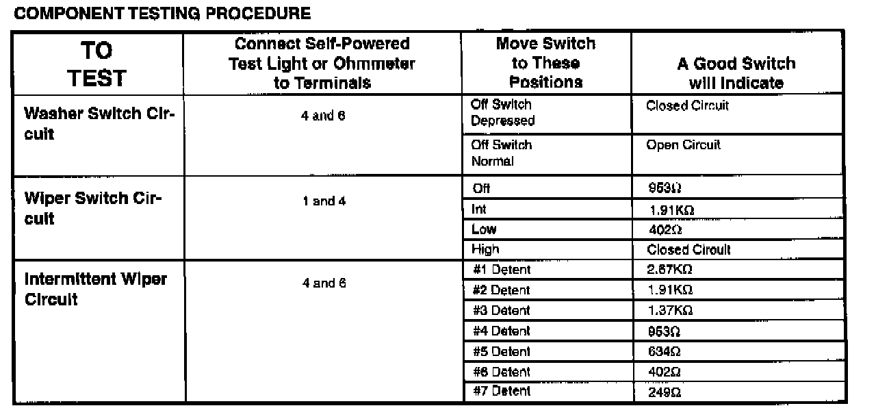 Wiper Switch: Testing and Inspection