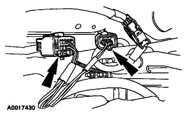 19. Attach a restraint system diagnostic tool to the vehicle harness side of the four-pin air bag sliding contact electrical connector.