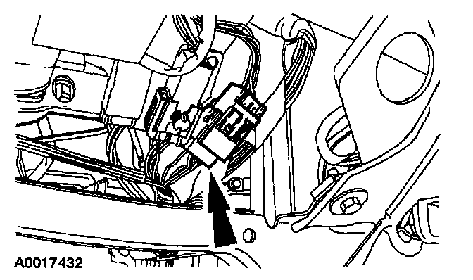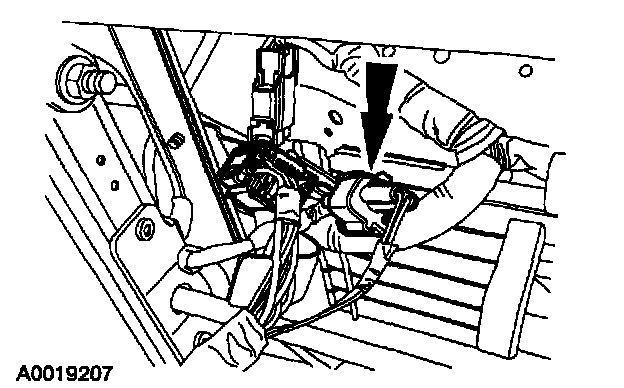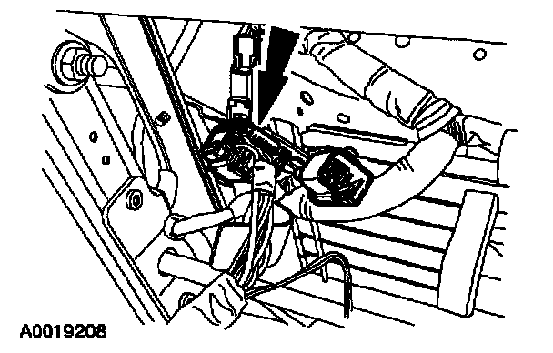1 Remove the passenger safety belt pretensioner restraint system diagnostic tool from the ten-pin floor electrical connector.