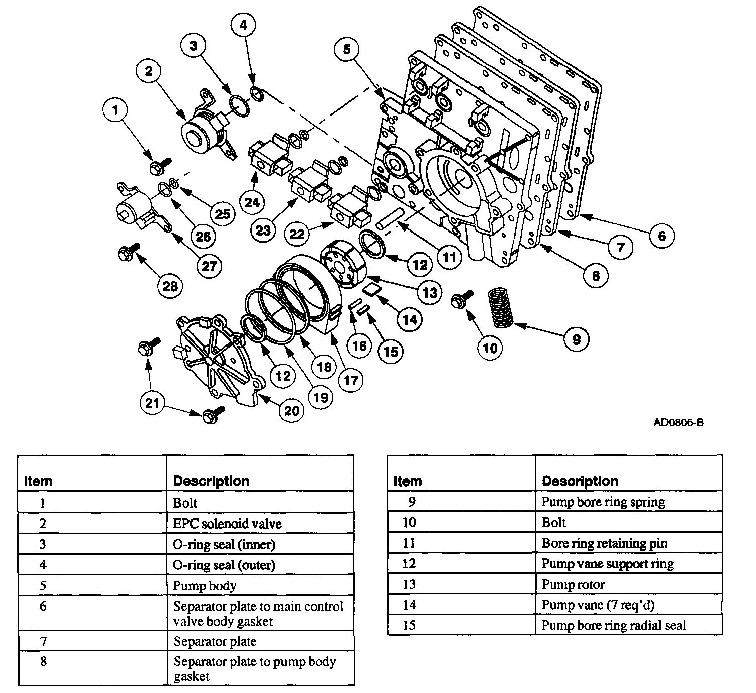 11. CAUTION: Be sure the pump bore area is well cleaned. It is a hidden foreign material trap. Flow from the pump goes into the manual valve circuit, then passes into the EPC circuit. Pump pressure at this point is very high. Any foreign material not cleaned out here will be pumped through the transaxle on the first operation.