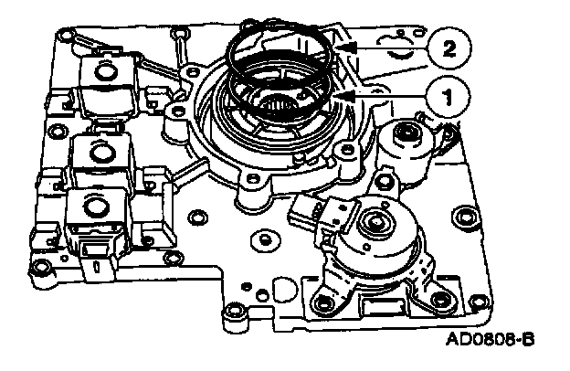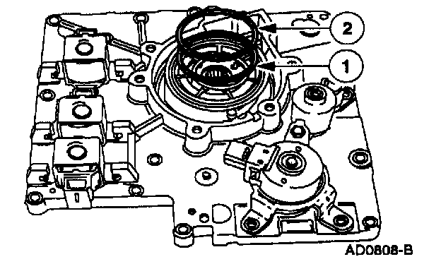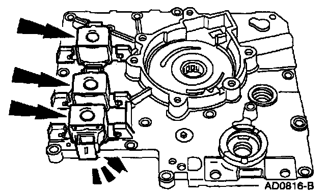 Replace the O-rings and install the shift solenoids by pressing down and rotating them until they lock in place.