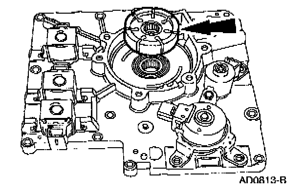 Remove the shift solenoids by pressing locking tab with a screwdriver and rotating them.