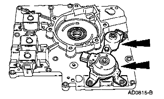 15. Note: The shift solenoids are interchangeable. Take note of the shift solenoid connector orientation.