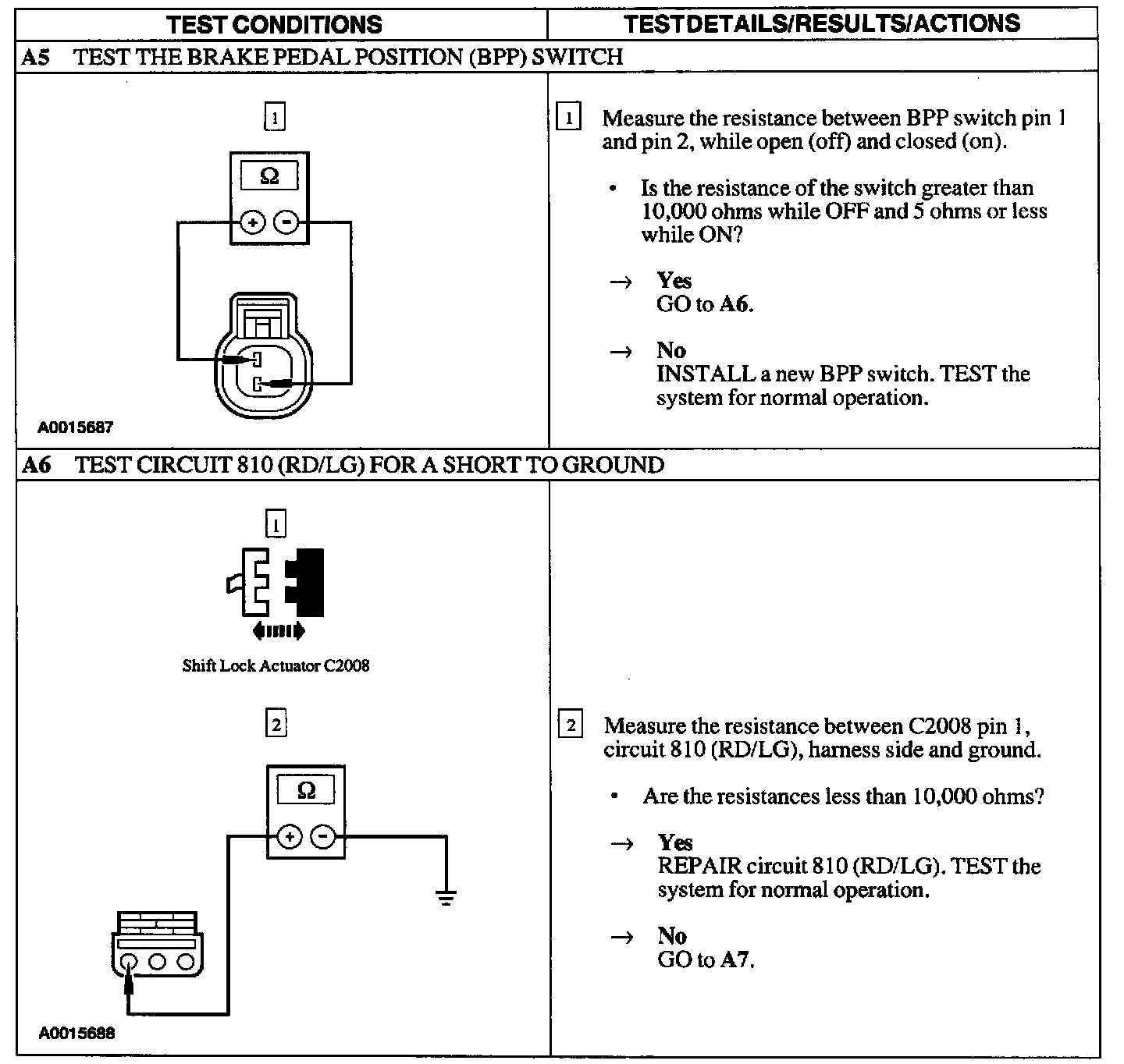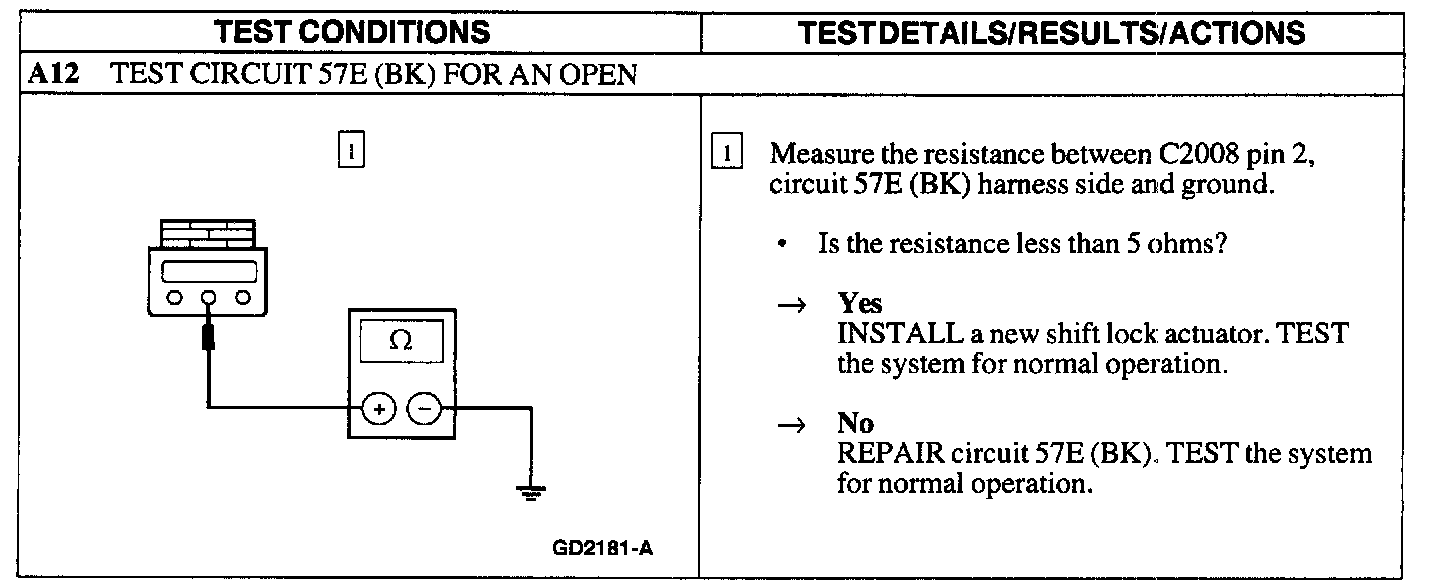 Test A: Shift Interlock System Does Not Release/Lock Correctly