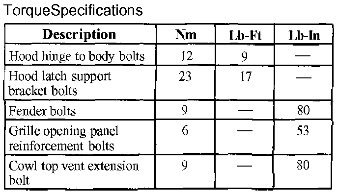 Torque Specifications: