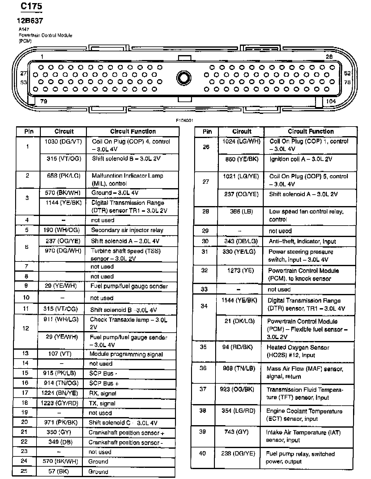 Taurus V6-3.0L VIN U