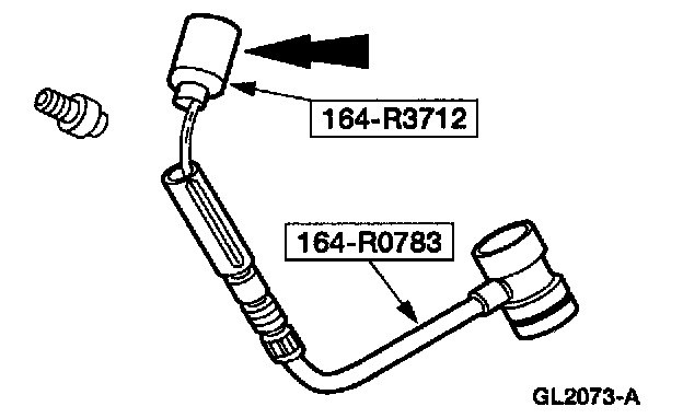 4. Install the special tool between the low-side quick disconnect and the vehicle low-pressure gauge port valve.