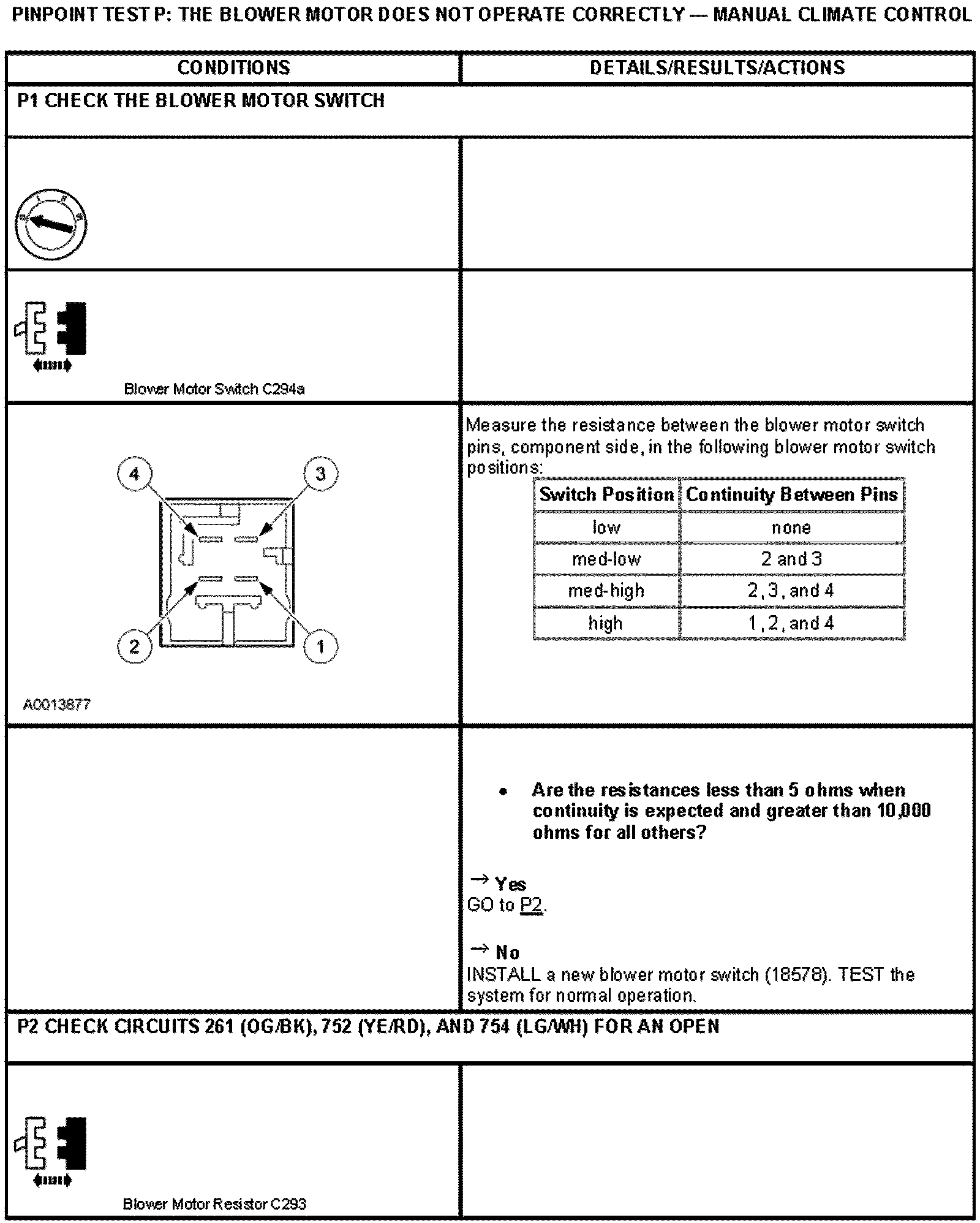 Test P: The Blower Motor Does Not Operate Correctly - Manual Climate Control