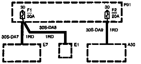 A thin dashed box on a diagram indicates a pan of the circuit which is only present for a particular vehicle model, country, or option. These qualifiers are shown next to the box on the diagram.