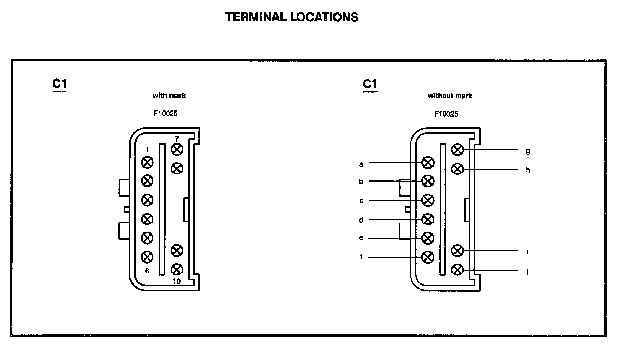 Testing information for each component includes a schematic with component terminal locations and step-by-step test procedures. Component terminals are identified by letters or numbers that may be marked on the component or callout if there is no mark on the component.