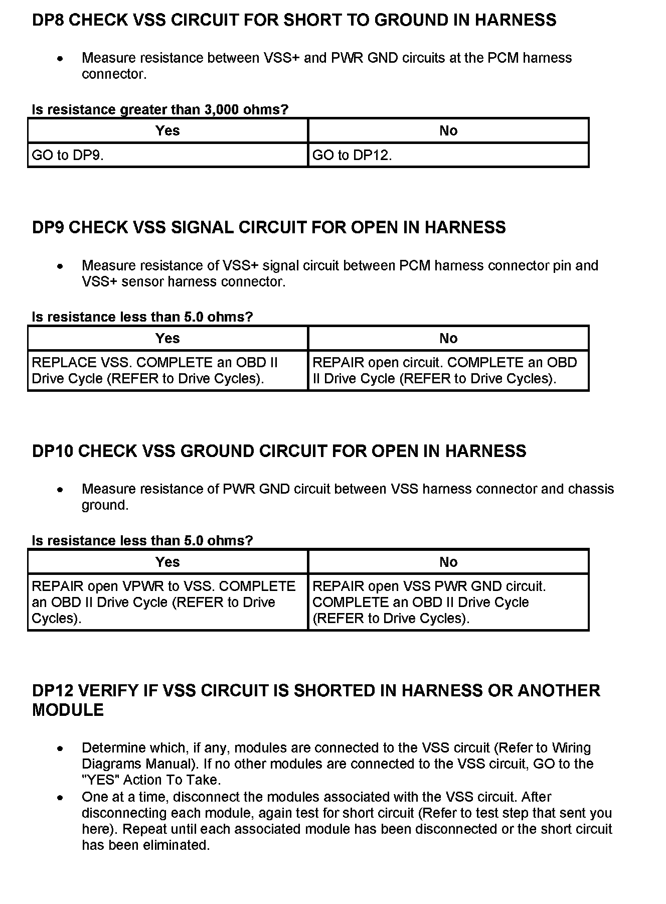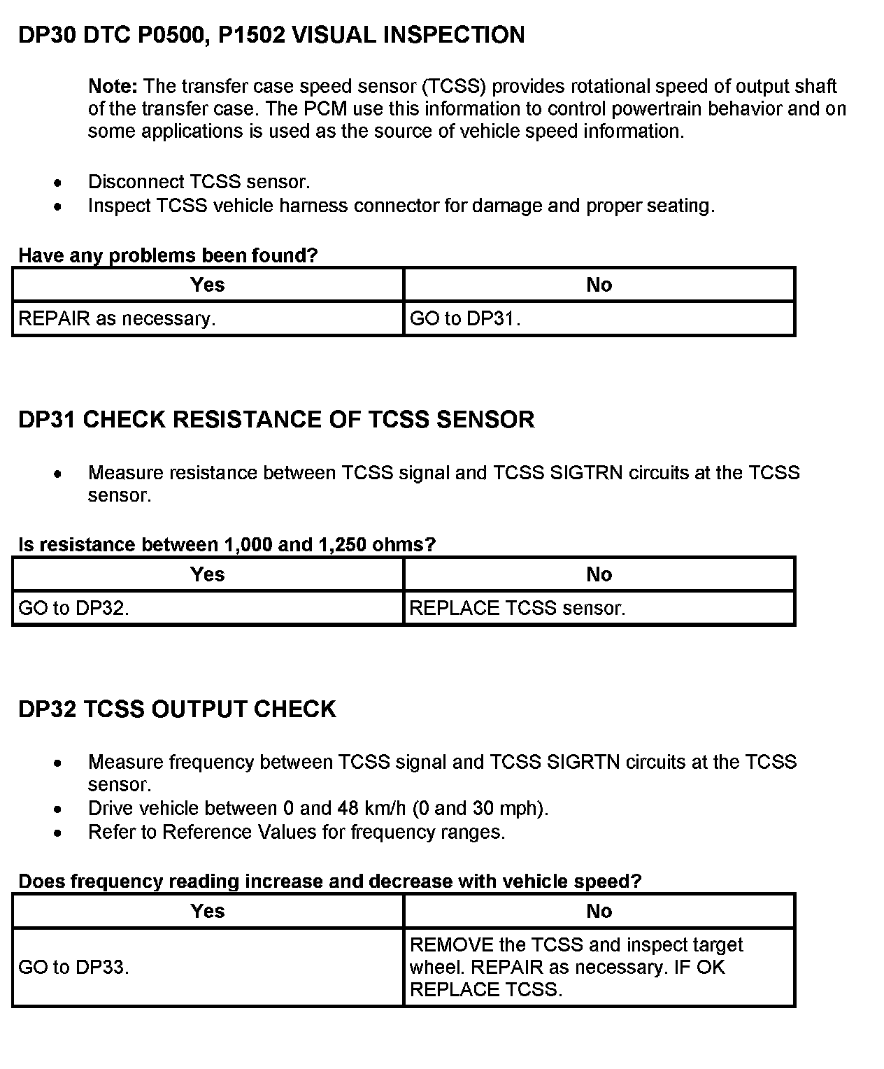 Tests DP: Vehicle Speed Sensor/Transfer Case Speed Sensor