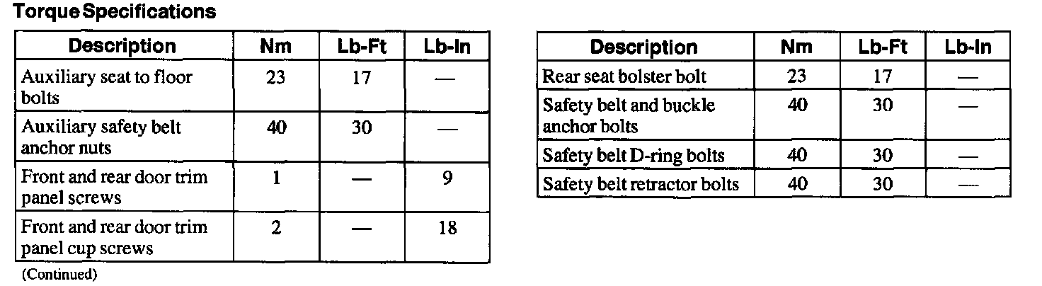 Torque Specifications: