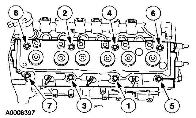 - Tighten the bolts in five stages in the sequence shown.
