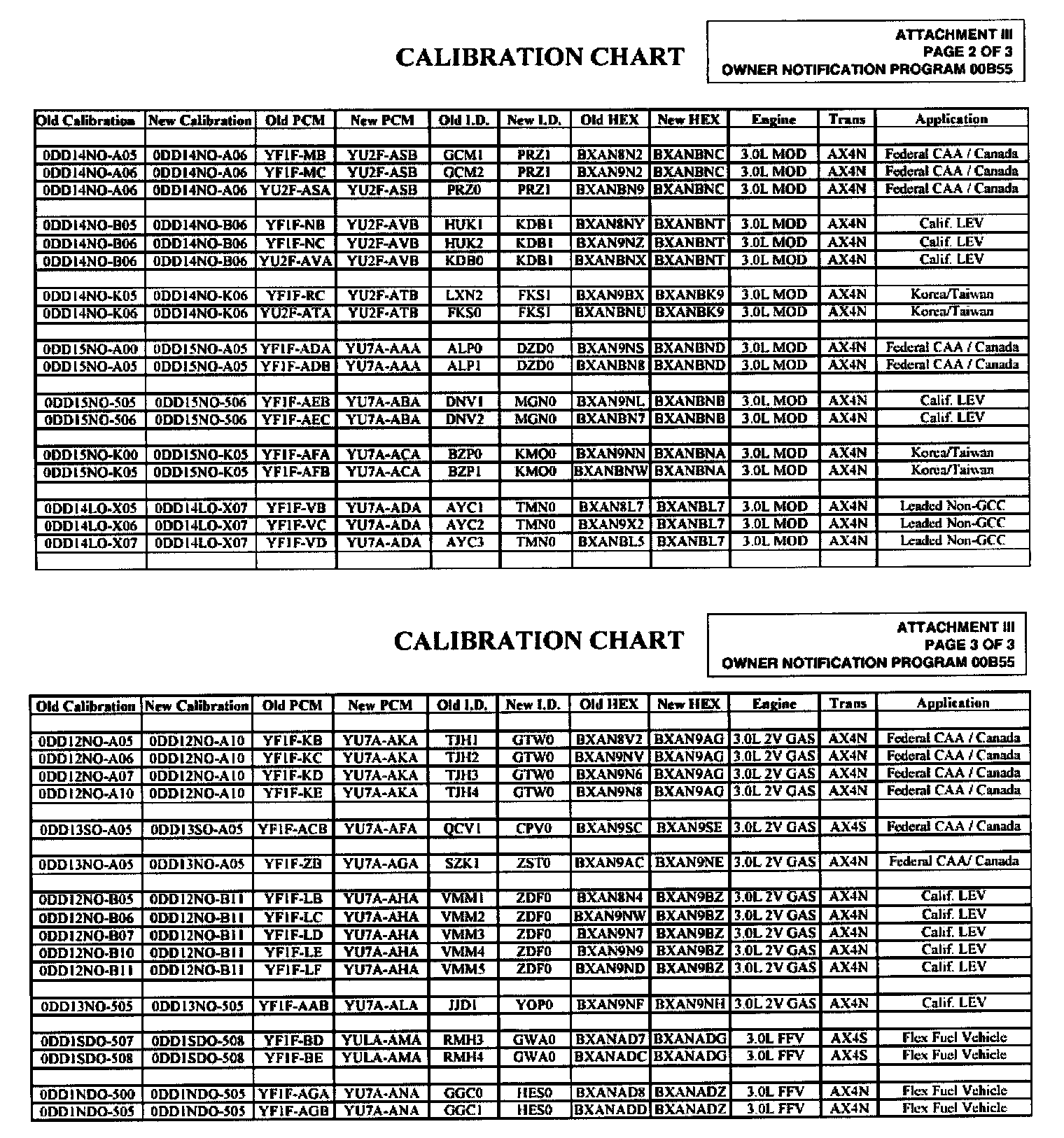 1. Reprogram the Powertrain Control Module (PCM) using the applicable calibration code from the calibration chart. Use one (1) of the following two (2) methods: