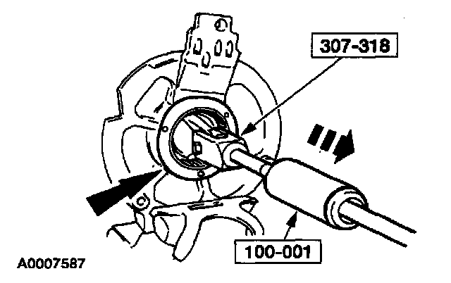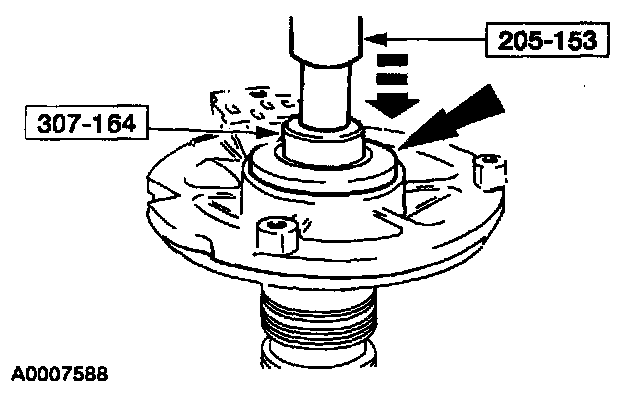 1. If removed, install a new driven sprocket bearing. Using the special tools and an arbor press install a new driven sprocket bearing.