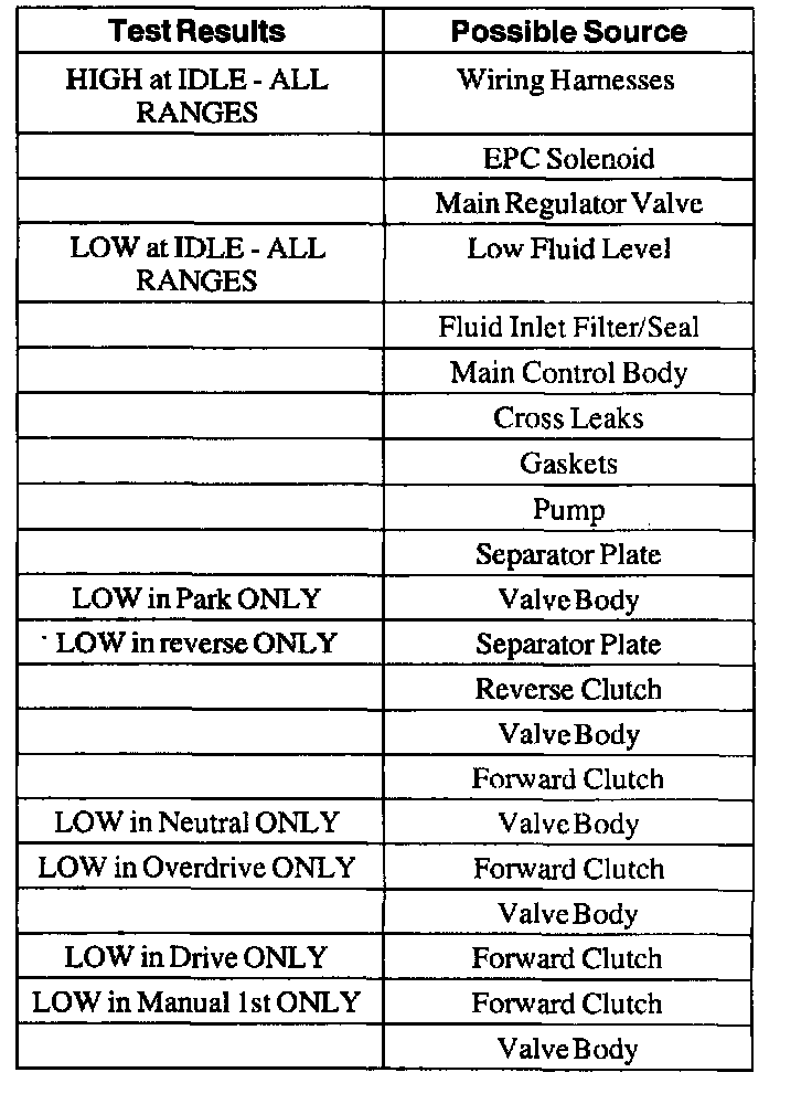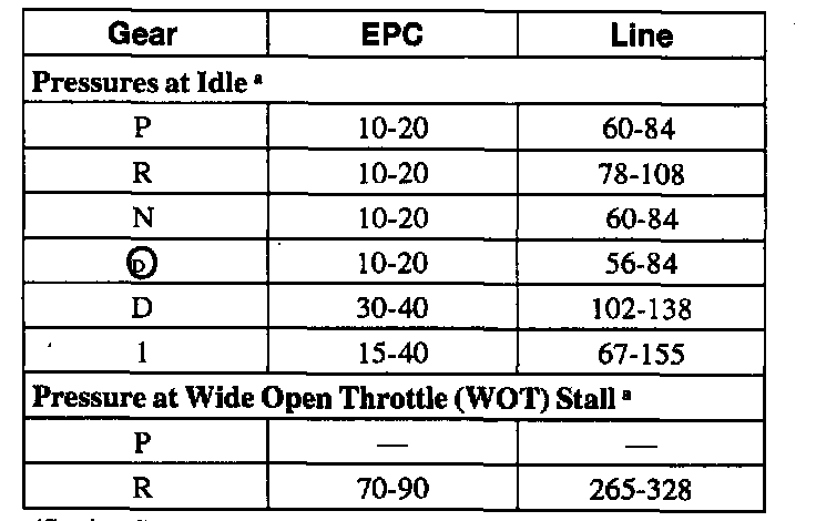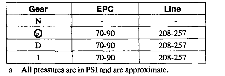 5. Start the engine and check the EPC pressure see the Line Pressure Chart for specifications.