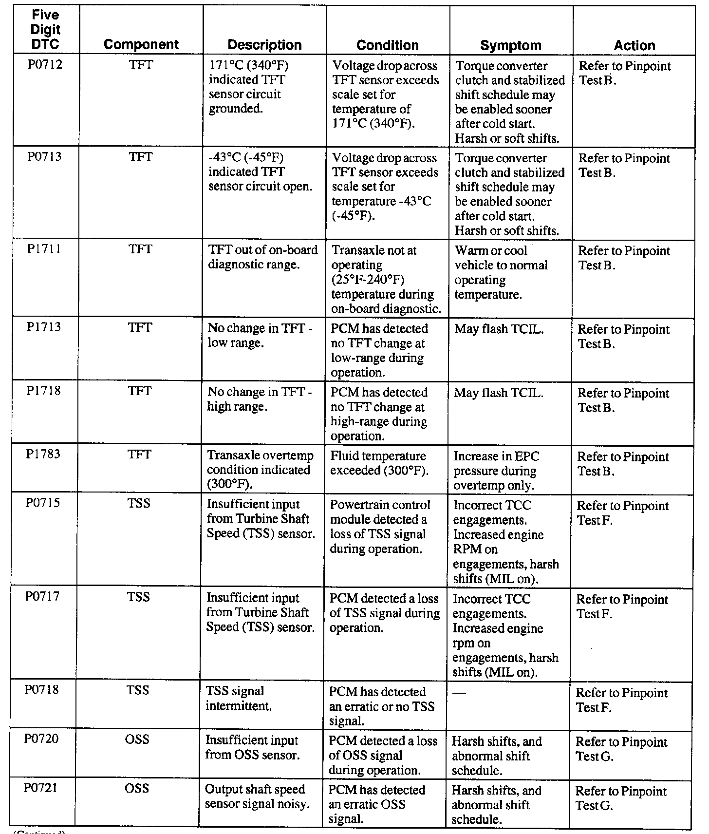 Trouble Code to Pinpoint Test Charts