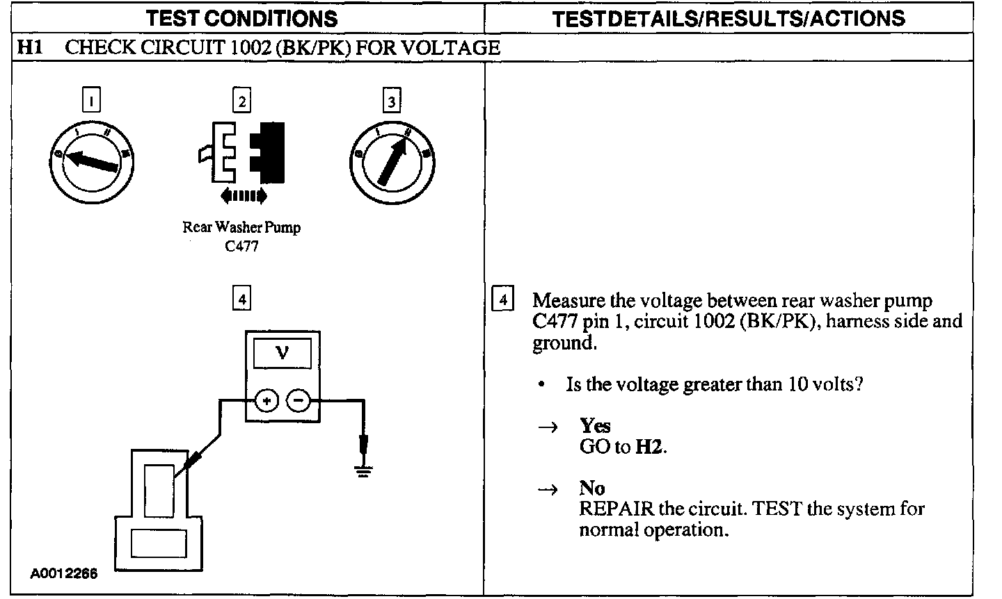 Test H: Washer Pump Is Inoperative