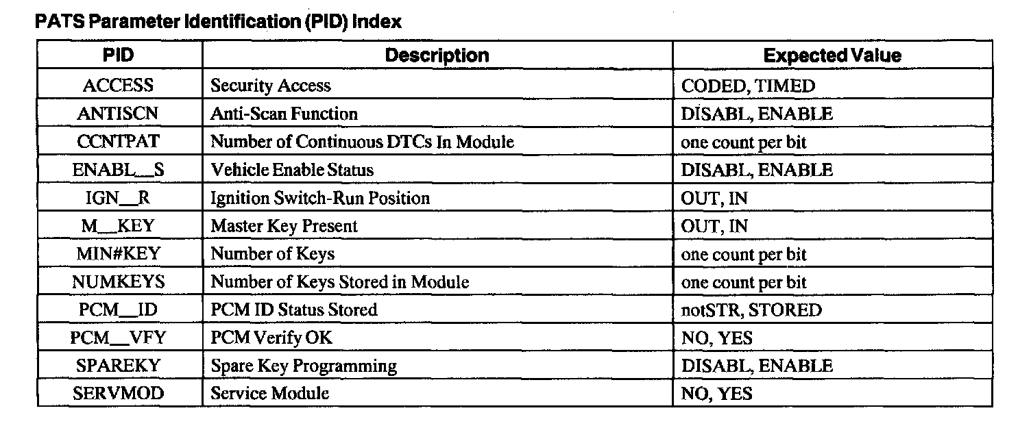 PATS Parameter Identification (PID) Index: