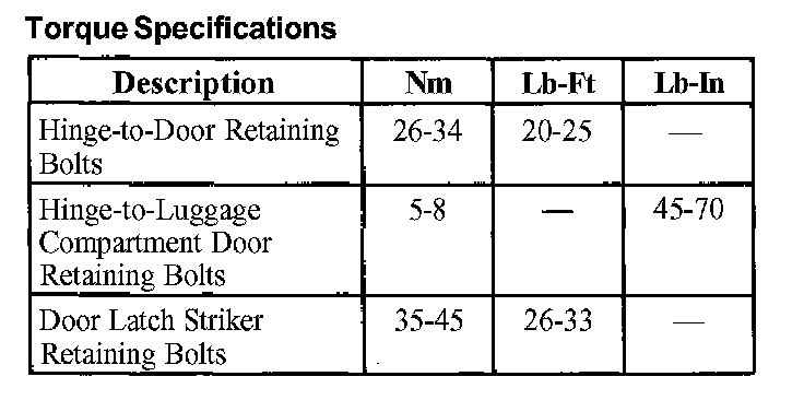 Doors, Hood and Trunk: Specifications