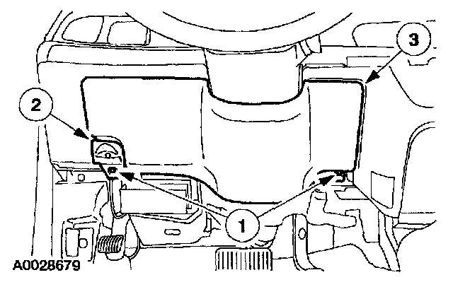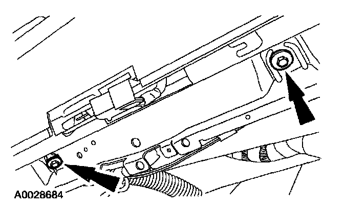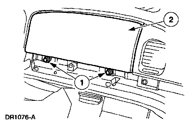 11. Through the glove compartment opening, remove the passenger air bag module bolts.