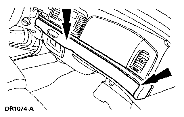 2 Placing one hand in the glove box opening, push the passenger air bag module out from the instrument panel.