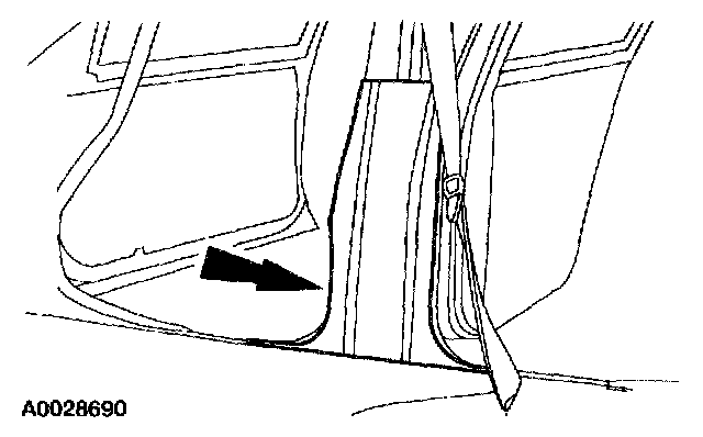 23. Pull out to release the retaining clips and remove the passenger side B-pillar lower trim panel.