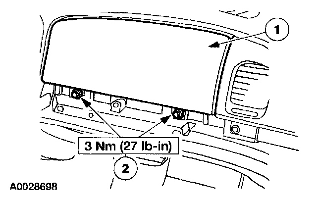 25. Through the glove compartment opening, install the passenger air bag module bolts.