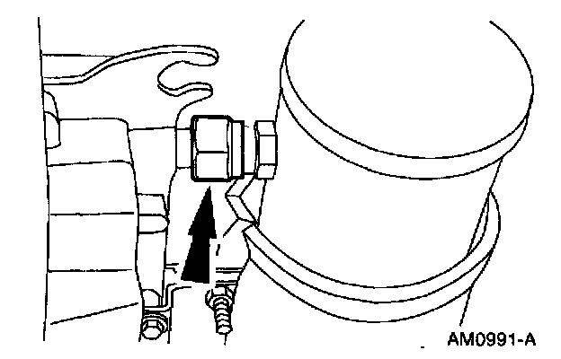CAUTION: To prevent damage to the fitting and the tube, use a backup wrench when removing the suction accumulator/drier.