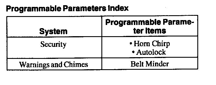 Programmable Parameters Index: