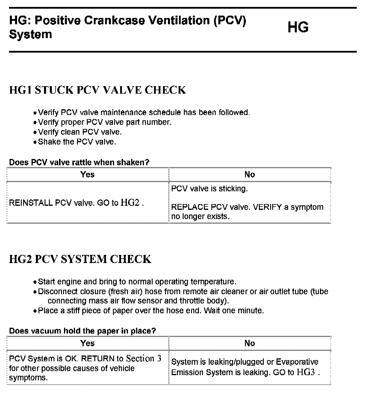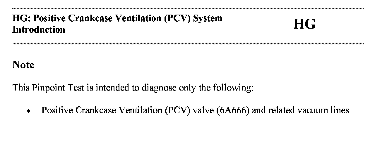 Tests HG: Positive Crankcase Ventilation (PCV) System