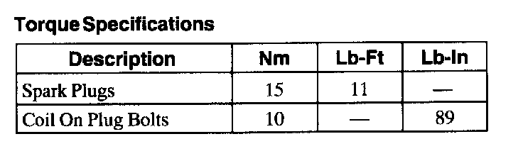 Torque Specifications: