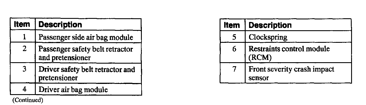 Air Bag And Safety Belt Pretensioner Supplemental System (SRS) Components, Part 2 Of 2: