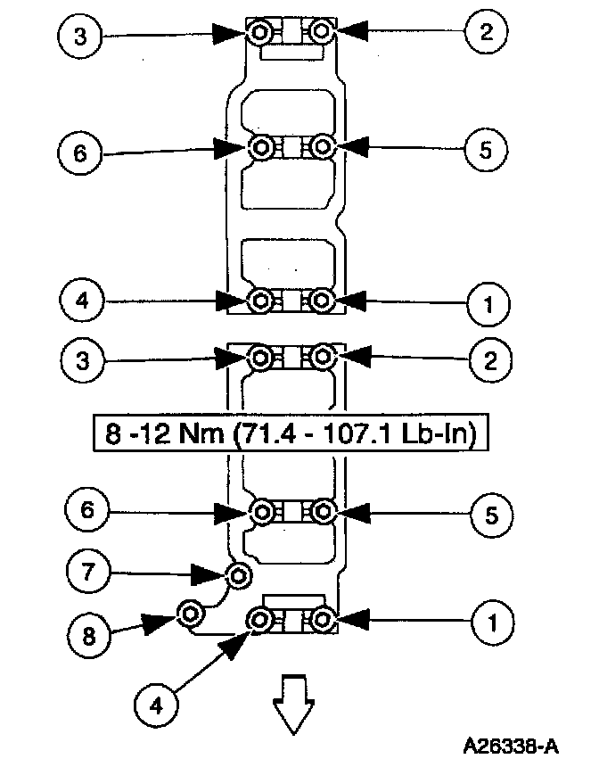 Tighten in sequence to 8-12 Nm (71.4-107.1 in.lb).