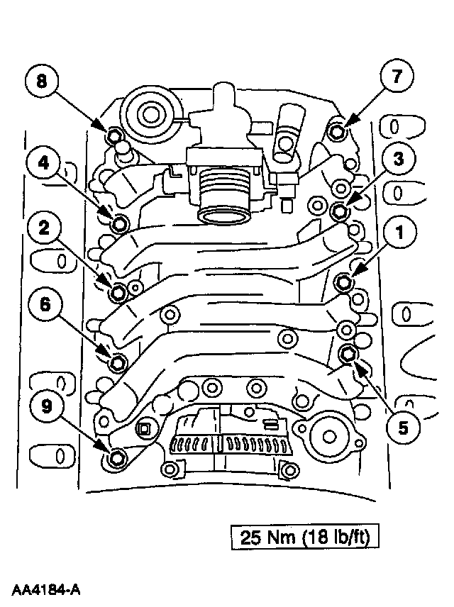 Tighten in sequence to 25 Nm (18 ft.lb).