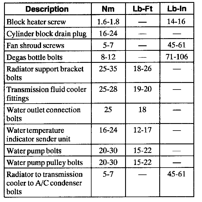 General Torque Specifications