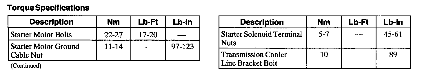Torque Specifications: