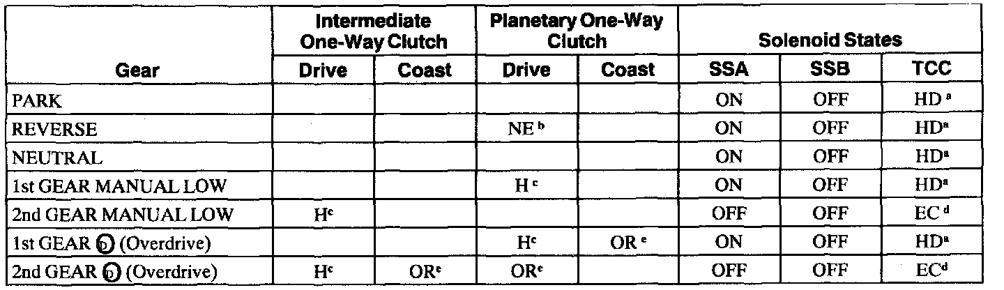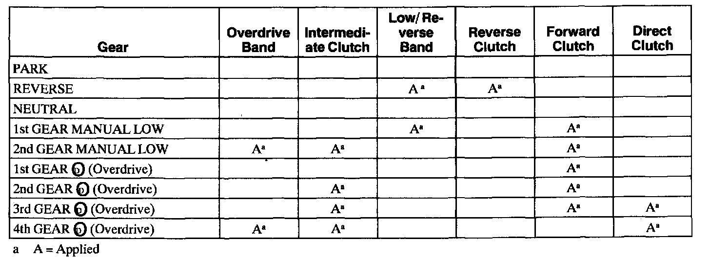 Band and Clutch Application Chart