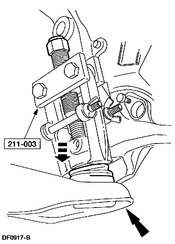 7. Using the special tool, remove the front suspension lower arm.