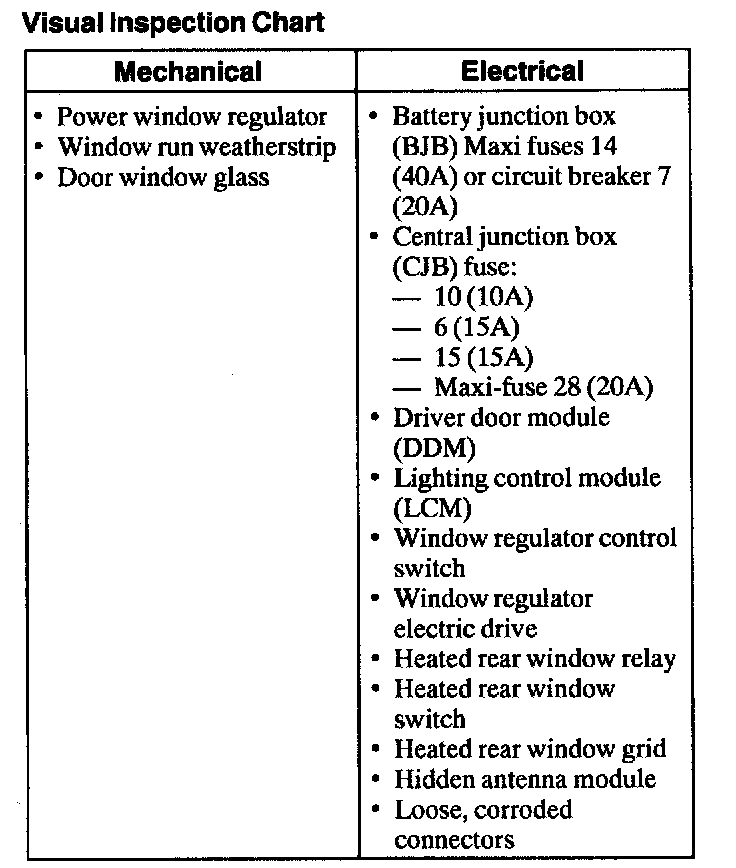 Visual Inspection Chart: