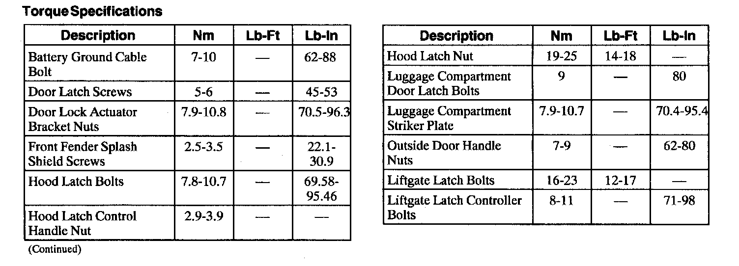 Torque Specifications: