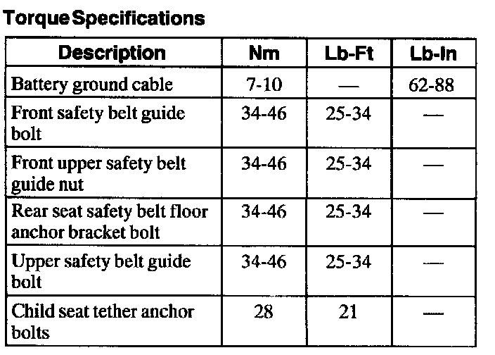 Torque Specifications:
