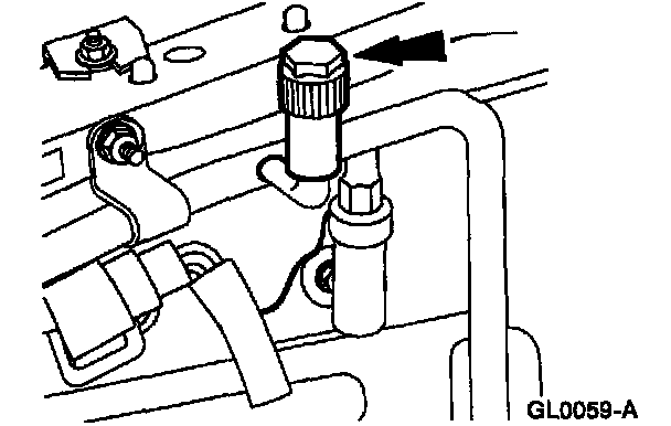 - A fitting located on the top of the suction accumulator is used to attach the A/C cycling switch. A long-travel Schrader-type valve stem core is installed in the fitting so that the A/C cycling switch can be removed without discharging the A/C system.