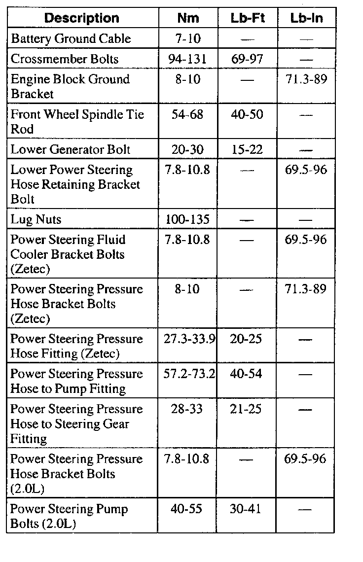 Torque Specifications