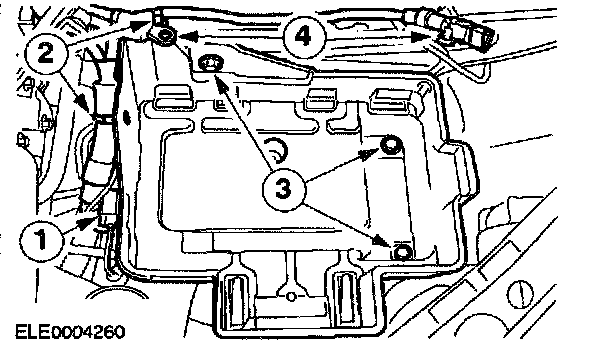 2. CAUTION: Disconnect the battery positive and the ground cable. Remove the battery.
