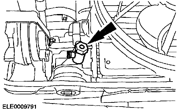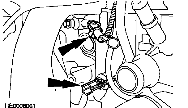 14. Disconnect the knock sensor (KS) and the oil pressure switch electrical connectors (shown from below).